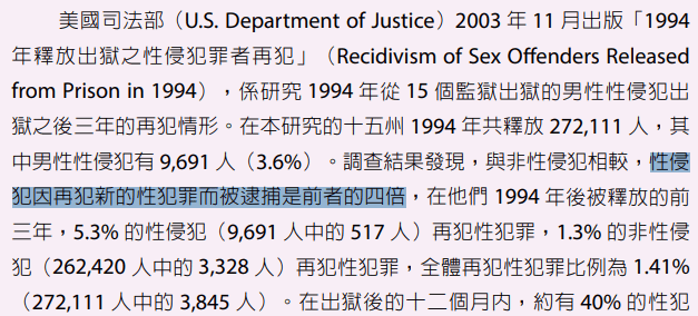 額外補充:性侵犯出獄後,再犯罪比例,是一般四倍